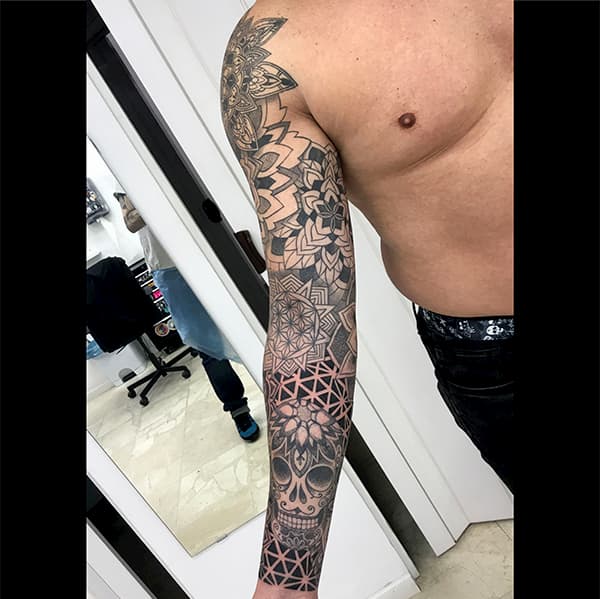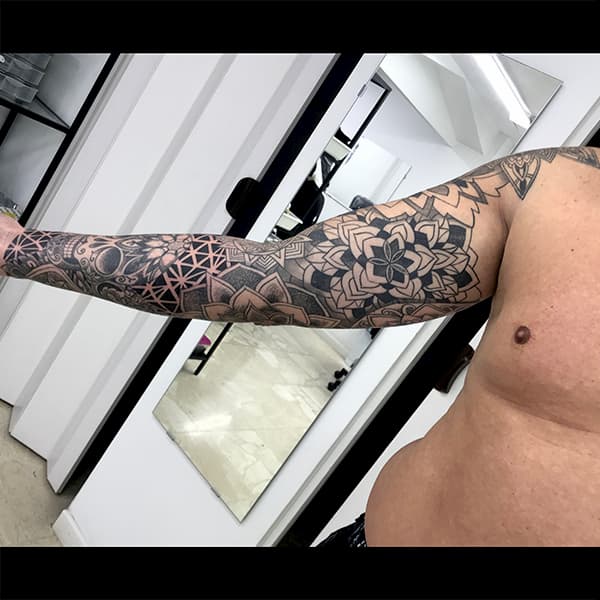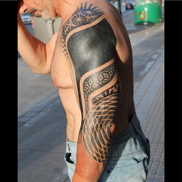 Otro de los estilos que se puso de moda últimamente. Suelen ser negros pero también se puede usar color: lo más importante es la forma. Se realizan con líneas y formas geométricas limpias y simples. Los dibujos tienen influencia de culturas indígenas, espirituales y tribales, patrones de la naturaleza y la ciencia, formas arquitectónicas y símbolos con raíces en la alquimia (algunos ejemplos comunes: triángulos, lunas, el símbolo de la piedra filosofal y flechas).