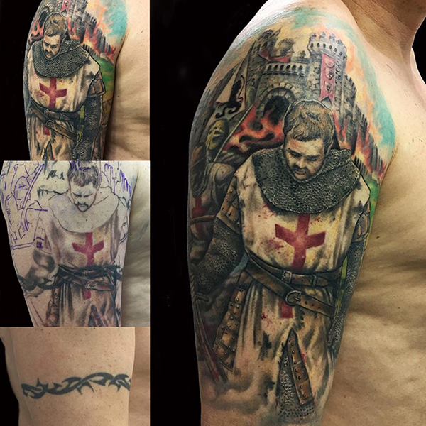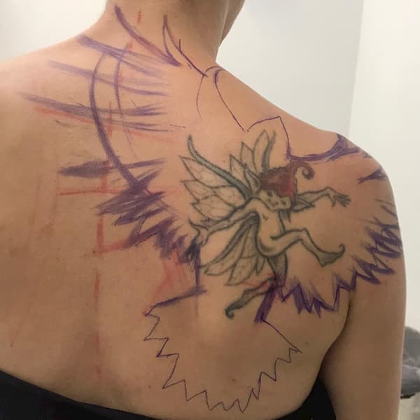 El proceso para hacer un cover up no difiere mucho del de un tatuaje convencional. Una vez hemos analizado la zona a cubrir, debemos hacer una composición muy meticulosa de lo que vamos a tatuar, preparar la piel para el trabajo y comenzar a hacerlo. Al tratarse de tatuajes de gran tamaño es posible que decidamos hacerlo en varias sesiones para dividir el trabajo y garantizar un resultado óptimo del nuevo diseño.